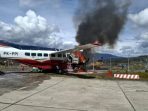 Pesawat Caravan Terbakar Usai Tabrak Portal Bandara Ilaga, Dua Pilot Luka-luka