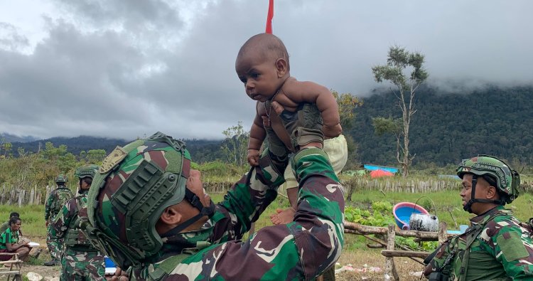 Pagi itu, suasana Kampung Yugumi terasa berbeda. Anak-anak berlarian riang di halaman, sementara para ibu tersenyum menyambut kedatangan para prajurit berseragam loreng. Mereka datang bukan dengan senjata, melainkan dengan kotak-kotak berisi makanan bergizi, susu, dan vitamin untuk anak-anak.