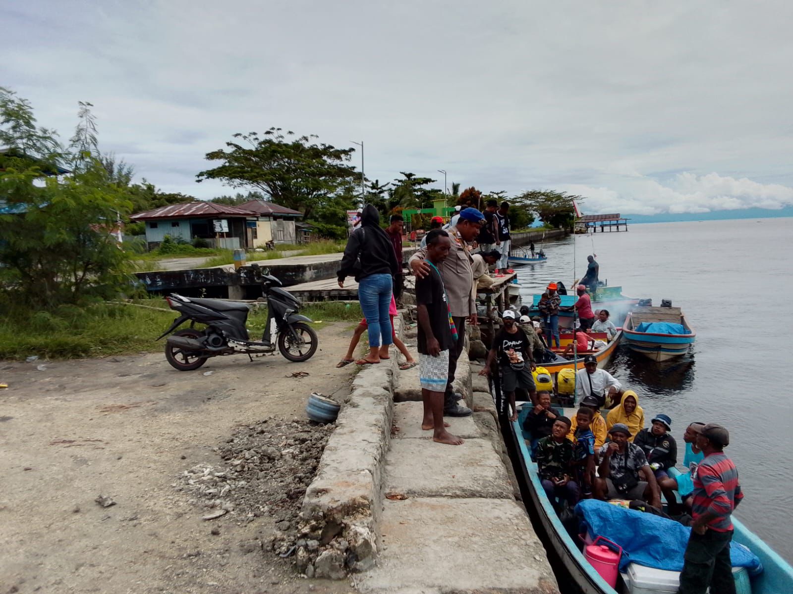 Kegiatan ini jauh dari kesan formal dan kaku. Iptu. Rumbiak dan timnya menyapa para pengemudi speed boat dan nelayan yang sedang bersiap melaut atau baru saja merapat. Percakapan mengalir santai namun penuh makna. Pesan yang disampaikan bukanlah instruksi dari atas, tetapi ajakan kolektif dari sesama anak laut untuk menjaga keselamatan bersama.